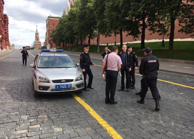 ЧС-2018 у Росії: британського активіста схопили біля Кремля за одиночний протест (ФОТО, ВІДЕО)