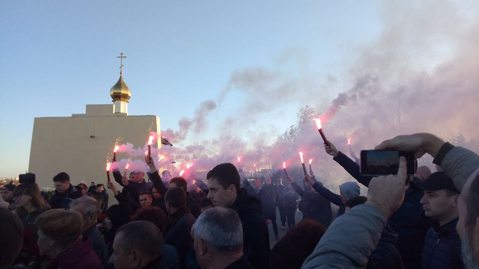 Отмечается, что попрощаться с Гандзюк на кладбище пришли ее родные, друзья и коллеги. Провожая активистку в последний путь, ее единомышленники зажгли файеры.