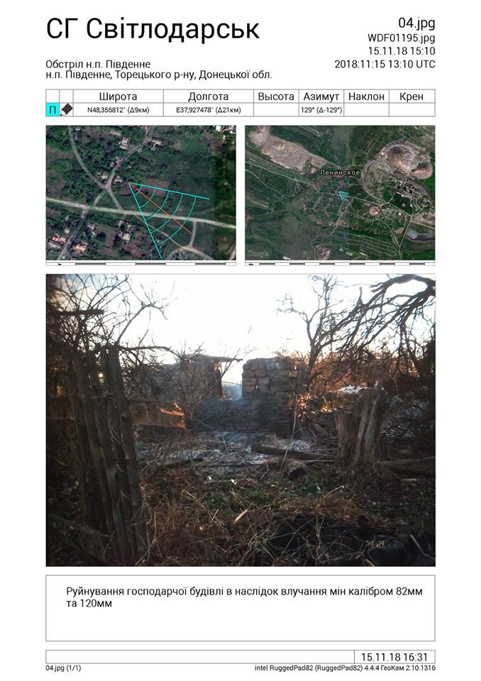 «Украинская сторона СЦКК сообщает, что ночью 15 ноября, под интенсивный огонь, который вели оккупанты из минометов калибра 82 и 120 мм из жилых кварталов Горловки, попали жилые дома Пивденного», — говорится в сообщении.