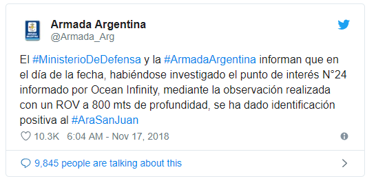 https://racurs.ua/n114245-v-argentine-obnarujili-podlodku-san-huan-propavshuu-osenu-proshlogo-goda.htmlРакурсАргентинскую подводную лодку San Juan (Сан-Хуан) обнаружили спустя год после исчезновения. Об этом сообщает Минобороны страны в Twitter.