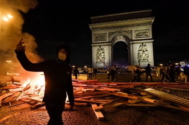 На Елисейских полях протестующие строили баррикады, разрушали светофоры, дорожные знаки и провоцировали полицию, которая была вынуждена применить слезоточивый газ и водяную пушку.
