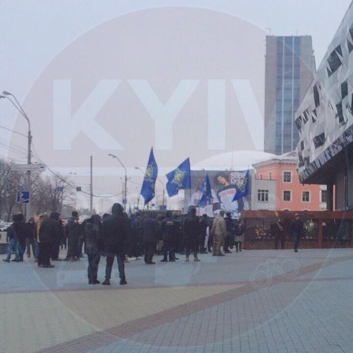 Как сообщают очевидцы, пикетируют ТРЦ около 100 человек — все представители националистической организации «Сокол». Они выступают против российского бизнеса в Украине, в том числе и против собственника Ocean Plaza.