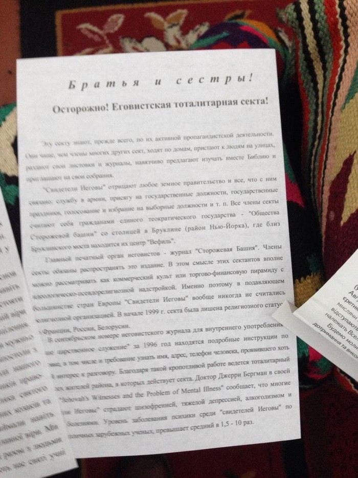 Специалисты Украинского научно-исследовательского института технической и судебной экспертиз установили, что эта брошюра «содержит пропаганду религиозной нетерпимости… оскорбляет чувства граждан в связи с их религиозными убеждениями, разжигает религиозную межконфессиональную вражду и ненависть».
