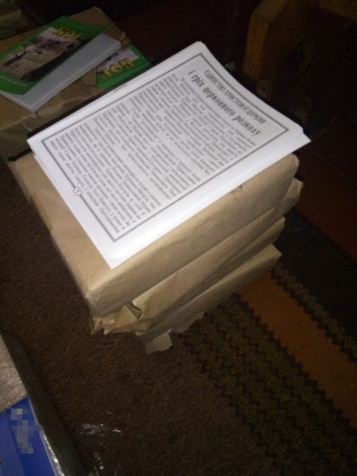 В частности, среди изъятой литературы были 75 экземпляров брошюры «Украинская православная церковь: Отношения с государством. Отношение к АТО и церковному расколу. Вопросы и ответы». В СБУ заявили, что эта брошюра ранее уже попадала в их поле зрения.