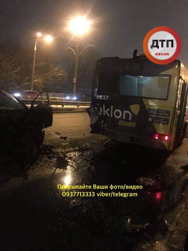 Жуткое ДТП в Киеве: на Борщаговке автомобиль врезался в автобус, погибла беременная женщина (ФОТО, ВИДЕО)