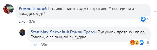 В комментарии к своему посту Шевчук добавил, что к нему предъявили претензии как к председателю суда, а уволили в качестве судьи.