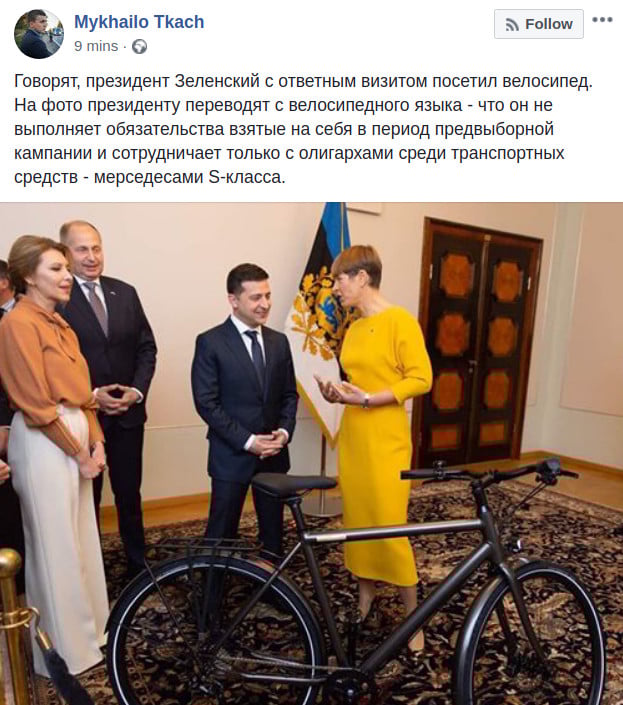 «Богиня стеба»: соцсети отреагировали на подаренный Зеленскому в Эстонии велосипед (ФОТО)