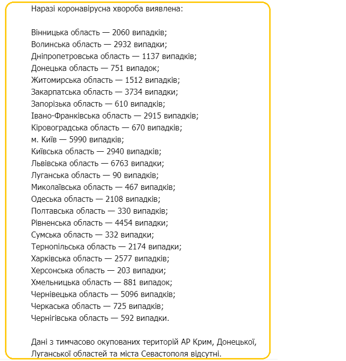 Также 9 июля были госпитализированы 214 человек, зафиксировано 18 летальных случаев. Победить болезнь удалось 1016 украинцам.