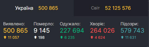 Всего с начала вспышки коронавируса в Украине заразились более 500 тыс. человек, умерли — свыше 9 тыс. человек.