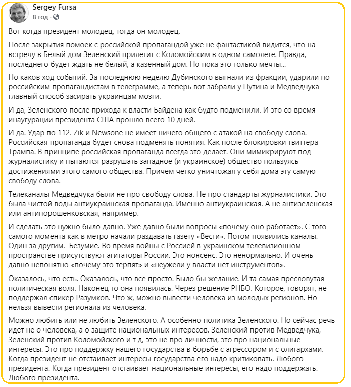 https://racurs.ua/n149916-sankcii-protiv-kanalov-medvedchuka-kak-pylaet-i-poteshaetsya-ukrainskiy-feysbuk-foto.htmlРакурсРешение Владимира Зеленского ввести санкции против телеканалов Newsone, «112 Украина» и ZIK, связанных с пророссийским нардепом и кумом Путина Виктором Медведчуком, вызвало бурную реакцию соцсетей.