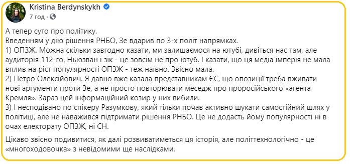 Эти каналы коммуникации привлекались к избирательному вмешательству — к примеру, накануне местных выборов 2020 года, они, среди прочих, поддерживали связанного с российскими спецслужбами кандидата Андрея Пальчевского. Они представляют собой медиа-хаб, объединяющий основных пророссийских актеров, например блогера Анатолия Шария, который систематически использует язык вражды, продвигает российскую дезинформацию, — напомнили в «Украинском кризисном медиацентре».
