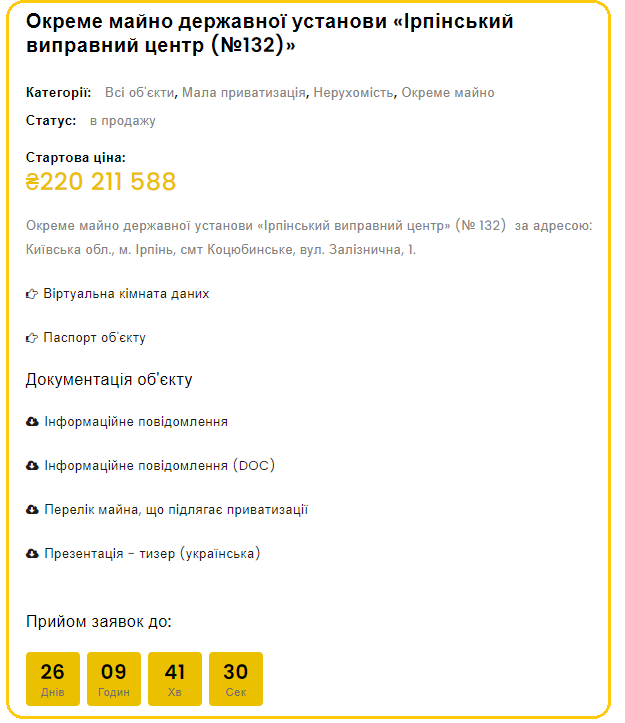 «Большая распродажа тюрем» дошла до этапа первого аукциона. Если кто-то имеет лишних 220 млн грн и хочет приобрести небольшую тюрьму в нескольких километрах от Киева — приглашаем, — отметил Малюська.