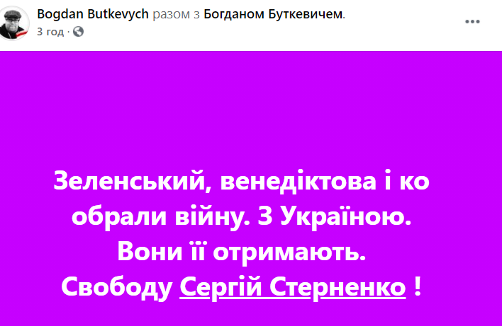 Отдельную точку зрения о фигуре Стерненко выразил и пасквилянт Владимир Бойко.