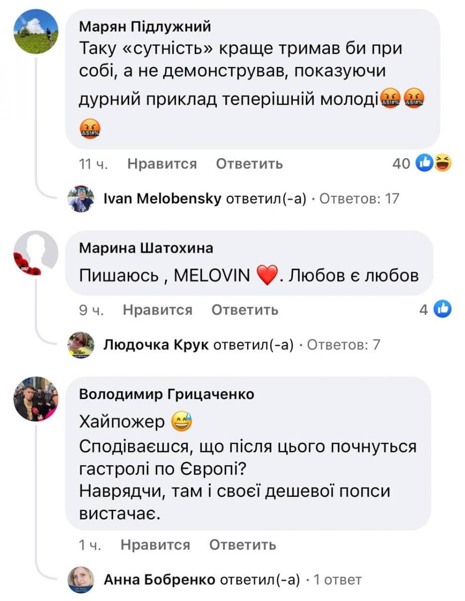 После выступления артист поцеловал девушку и парня, с которыми выступал. Позже он развернул флаг ЛГБТ. Однако этот фрагмент не показали в эфире телеканала М1, который вел трансляцию фестиваля. Об этом Melovin написал в своих соцсетях.