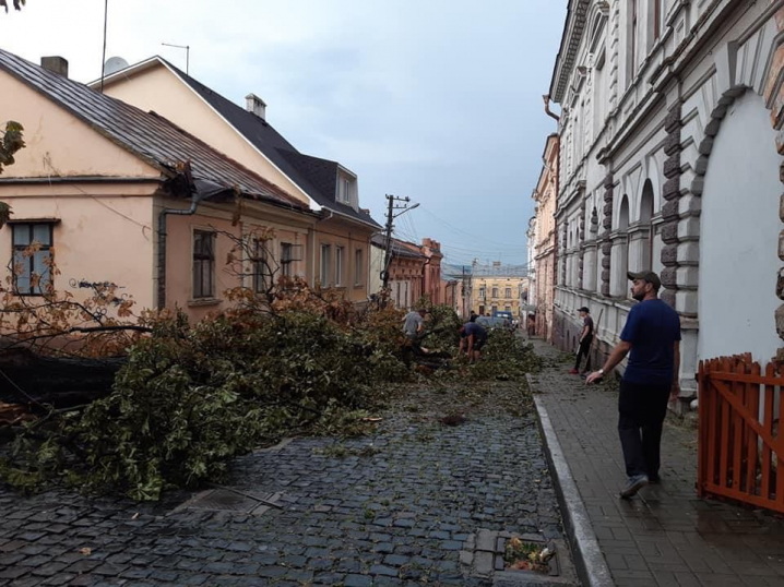 В некоторых районах Черновцов ураган повалил деревья на проезжую часть и тротуары, заблокировав движение.