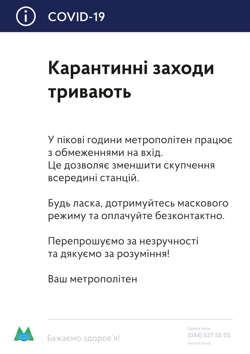 По информации Киевского метрополитена ограничения вводят, чтобы избежать скопления людей на станциях.