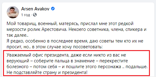 Уважаемый Офис президента, даже если никто из вас не верующий — соберите пальца в знамение — перекрестите болезного — потом себя — и пошлите этого персонажа… Подальше. Не подставляйте страну и президента! — отметил экс-глава МВС.