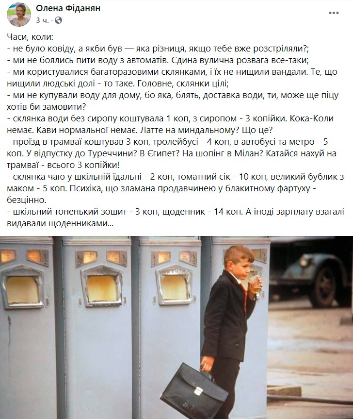 Главная педагог столицы разместила сообщение в Facebook о преимуществах, которые имели дети и взрослые во времена Союза Советских Социалистических Республик. Отметила, что в те времена не было коронавируса, а люди не покупали воду для дома, а пили из крана. Также она написала, что в те времена копейки еще имели вес и за них можно было купить некоторые вещи.