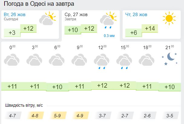 Погода в Одессе будет с кратковременными дождями. Столбики термометров ночью покажут 8−10°, днем ожидается 10−12°.