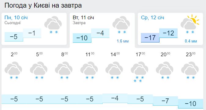 Погода в Киеве ожидается снегом, также синоптики прогнозируются похолодание. Ночью температура составит 10° ниже нуля, днем будет 4° мороза.