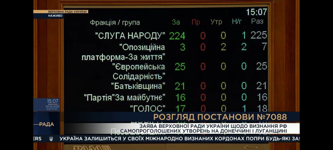 Верховная Рада 22 февраля приняла постановление («за» — 336 нардепов) с призывом заморозить запуск «Северного потока-2», запретить экспорт в Россию высоких технологий, в том числе касающихся военно-промышленного комплекса.