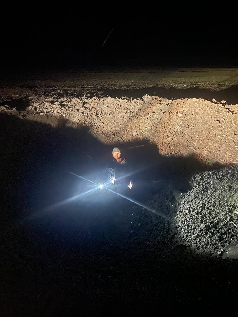Він опублікував фото місця падіння і написав, що на місце виїхали місцеві жителі. Саме вони й надіслали фото вирви від вибуху.