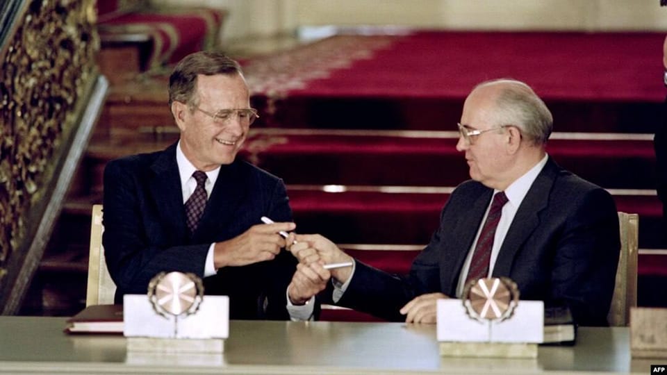 Двосторонній договір між росією та США про взаємне скорочення арсеналів розгорнутих стратегічних ядерних озброєнь передбачає скорочення кожної зі сторін розгорнутих ядерних боєзарядів. Договір про скорочення і обмеження стратегічних наступальних озброєнь СРСР-США (СНО-1) підписали 31 липня 1991 року Джордж Буш та Михайло Горбачов.