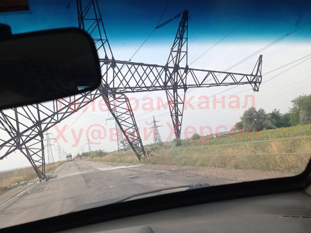 Колишній радник голови Херсонської ОВА, депутат Сергій Хлань 11 серпня повідомив, що на Херсонщині впали електроопори, які ведуть від Каховки до Чаплинки, у бік Криму.