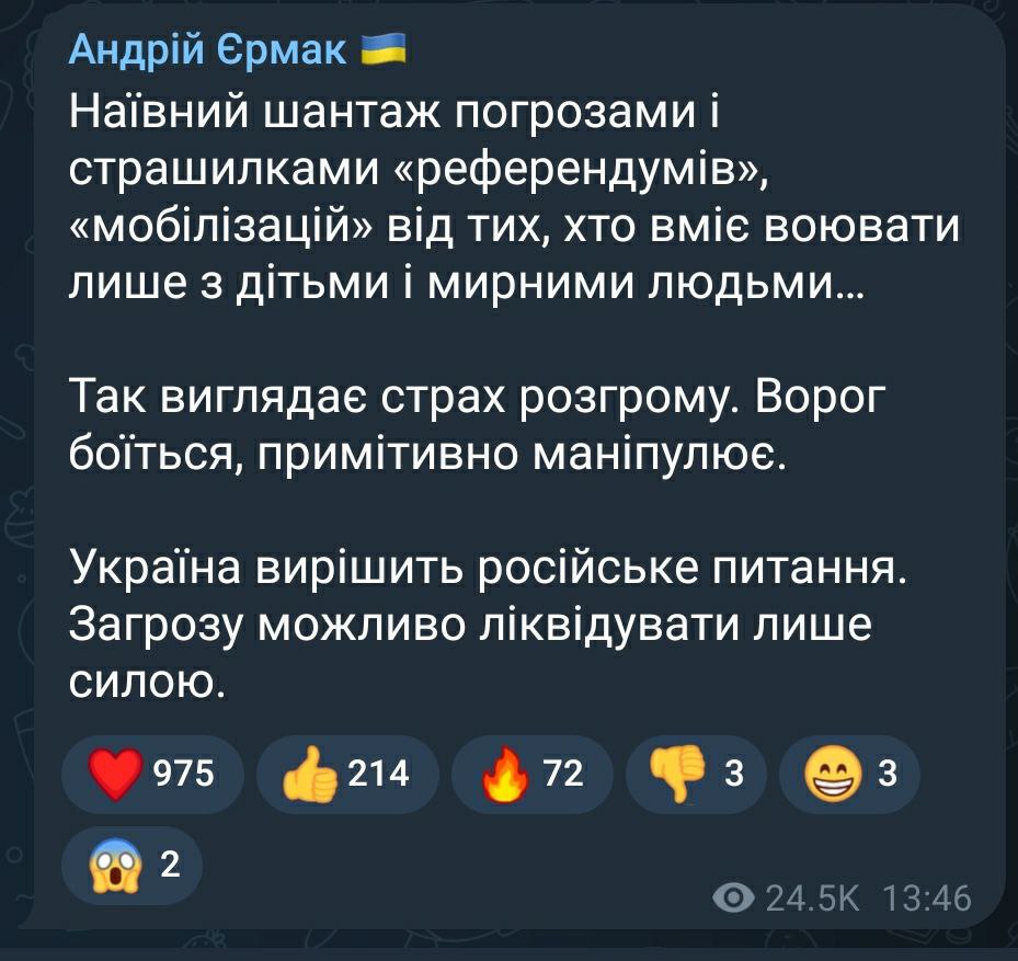 В Офісі президента України вже відреагували на такі дії рашистів. Менш як через годину услід за так званою лнр, про наміри провести у тих же датах референдум заявили у фейковій днр.