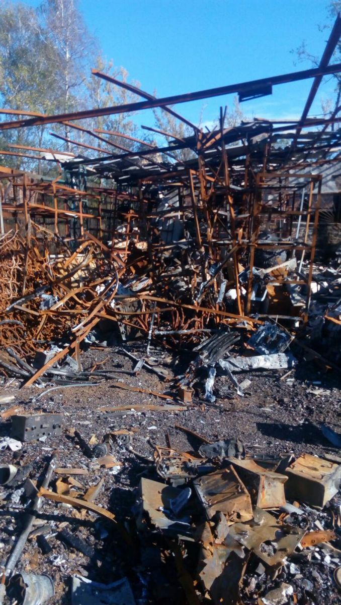 Було влучання зверху по центру будівлі, попадали перекриття до першого поверху (точнісінько на пульт управління телескопом). Металеві балки даху здебільшого цілі, шифер весь розлетівся, звичайно, — зазначає учений. — Дощі, зима скоро, а в нас нема даху, вікон і діра до першого поверху, впала ще одна плита. Склади вигоріли вщент, і туди треба дах на будівлю.