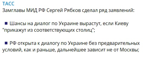Тепер заступник голови МЗС сєргєй рябков заявив, що «росія відкрита до діалогу щодо України без попередніх умов».