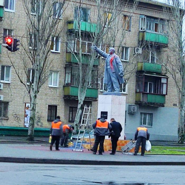 https://racurs.ua/n177913-pamyatnik-leninu-v-melitopole-oblili-krasnoy-kraskoy-video.htmlРакурсУ Мелітополі, тимчасово окупованому місті Запорізької області, червоною фарбою облили пам’ятник більшовицькому вождю володимиру леніну, розташований неподалік від відділку «поліції», де рашисти влаштували одну з катівень цивільних полонених.