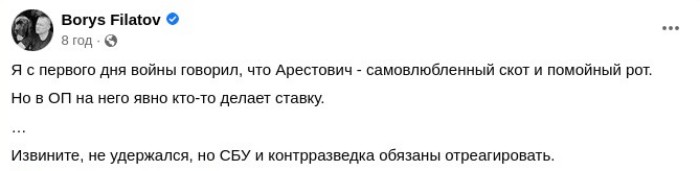 Зокрема, мер мер Дніпра Борис Філатов закликав СБУ та контррозвідку відреагувати на заяву радника Офісу президента.