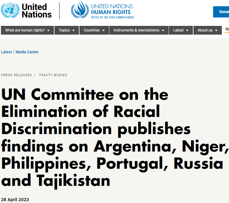 Також комітет ООН висловив «стурбованість» повідомленнями про розпалювання расової ненависті та пропаганду расистських стереотипів щодо етнічних українців.