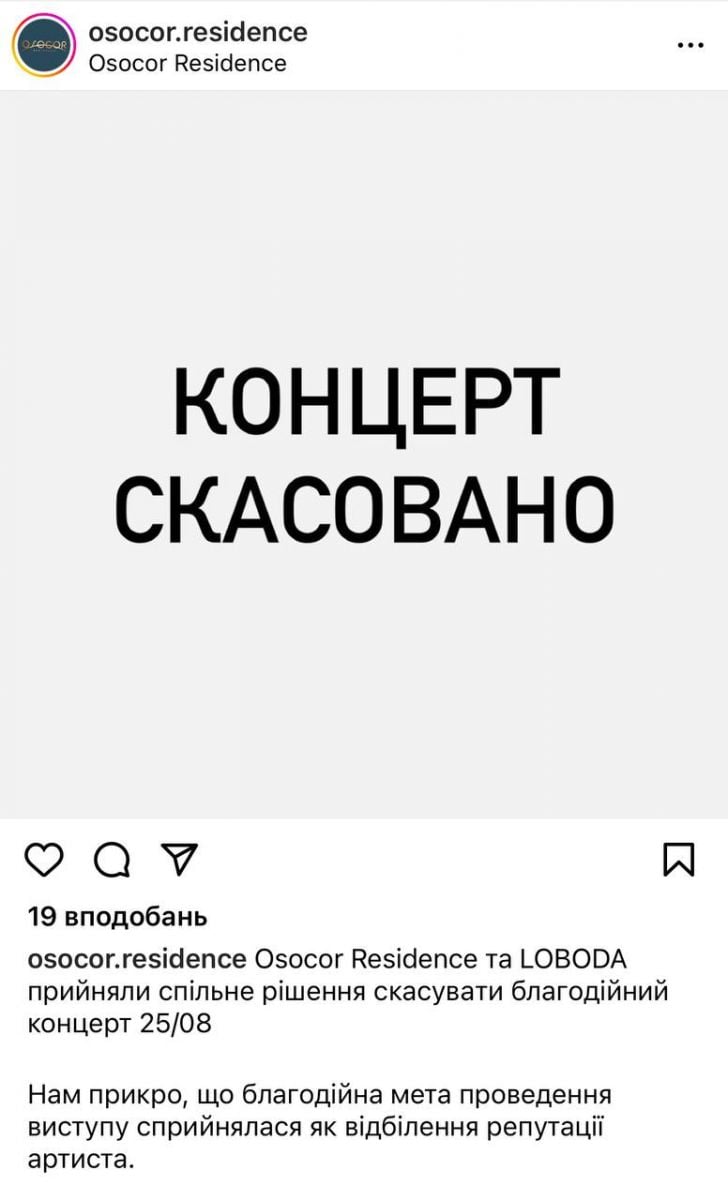 Спочатку зі сторінок Osocor у соцмережах зникло оголошення про концерт Лободи. Так само з сайтів-операторів видалили сторінки про концерт.
