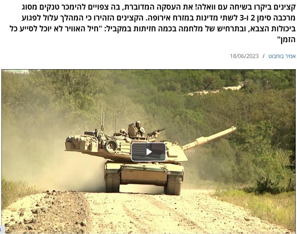 https://racurs.ua/n184219-izrail-pod-vliyaniem-ssha-soglasilsya-prodat-v-evropu-tanki-merkava-mark-oni-mogut-doehat.htmlРакурсВидання Walla з посиланням на польських військових експертів повідомляє, що Ізраїль під впливом США погодився продати одній із європейських країн танки Merkava Mark 2 та 3 — з перепродажем у Польщу та Україну.
