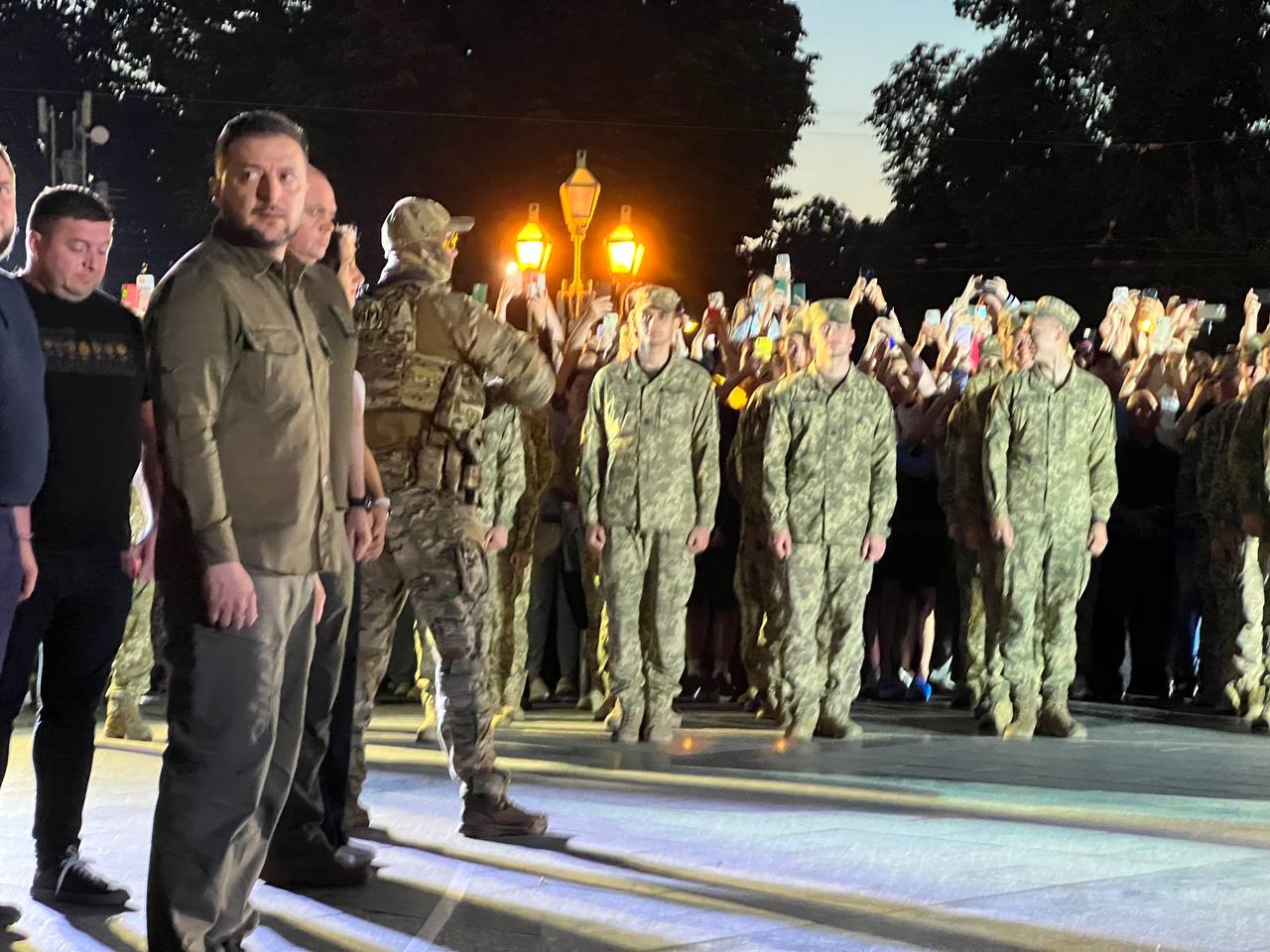 https://racurs.ua/n184928-osvobojdennye-iz-plena-komandiry-oborony-mariupolya-i-zelenskiy-vstretilis-s-lvovyanami-foto.htmlРакурсУ Львові увечері 8 липня відбулася зустріч президента України Володимира Зеленського та звільнених з полону командирів оборони Маріуполя з місцевими жителями.