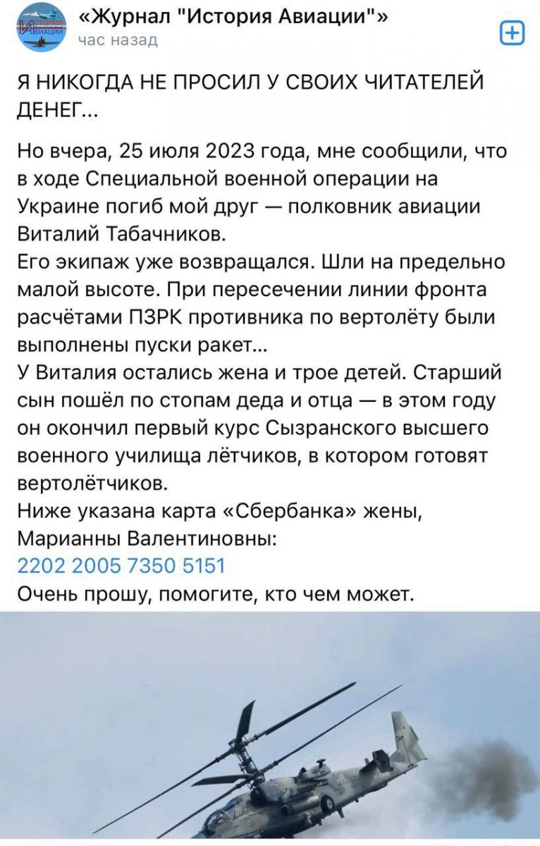 Ліквідовано також командира 112 окремого вертолітного полку ЗС рф Віталія Табачнікова.