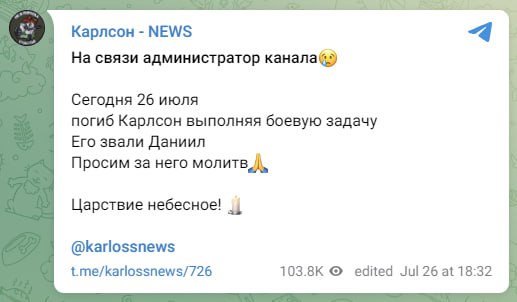 https://racurs.ua/n185520-karlson-uletel-i-ne-obeschal-vernutsya-pod-klescheevkoy-vsu-denacificirovali-esche-odnogo.htmlРакурсПід Кліщіївкою українська армія «денацифікувала» ще одного російського воєнкора з позивним Карлссон.