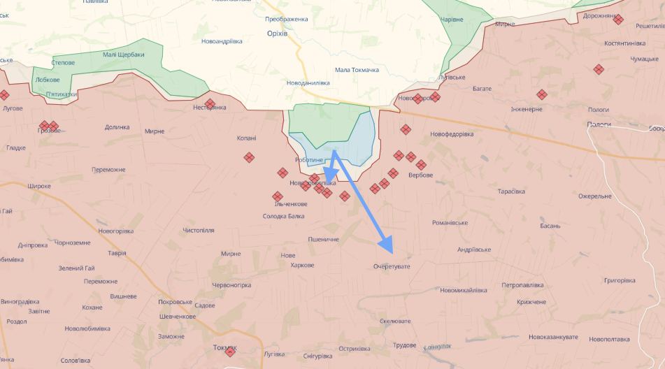 Повідомляється, що українські війська просуваються у напрямку Новопрокопівки, Малої Токмачки та Очеретуватого на заході Запорізької області, а також у районі Урожайного та Роботино, і продовжують наступальні операції на Бахмутському напрямку.