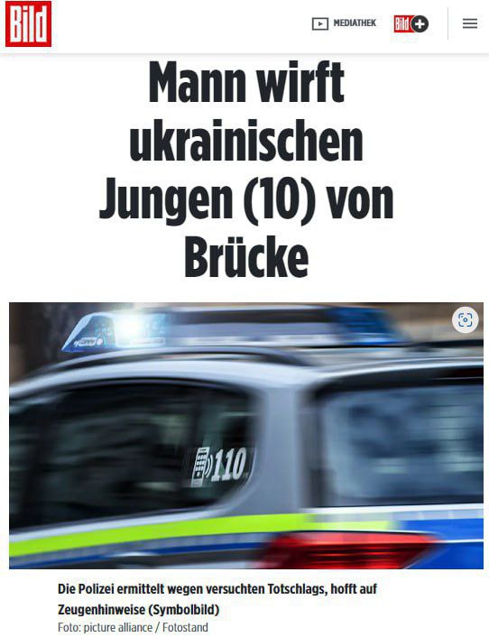 https://racurs.ua/n186799-v-germanii-napali-na-detey-kotorye-govorili-po-ukrainski-chto-izvestno.htmlРакурсПрокуратура німецького міста Геттінген почала попереднє розслідування за фактом замаху на вбивство 10-річного українського хлопчика: російськомовний чоловік напав на дітей, бо вони розмовляли українською мовою.