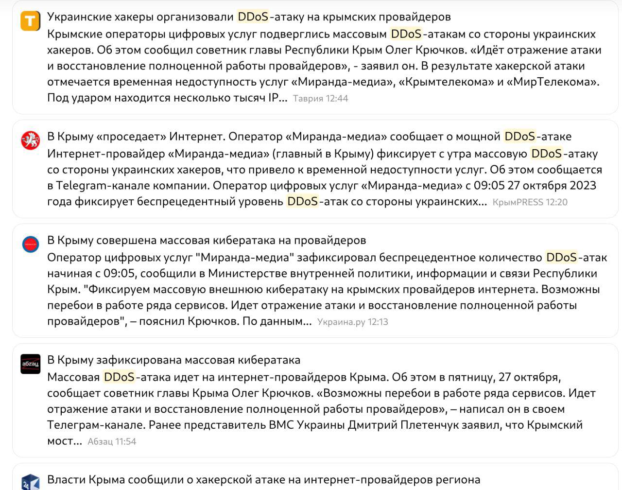 https://racurs.ua/n188780-ukrainskaya-it-armiya-ostanovila-rabotu-internet-provayderov-rf-v-krymu.htmlРакурсКіберармія України зупинила роботу найбільших російських інтернет-провайдерів на тимчасово окупованих територіях.