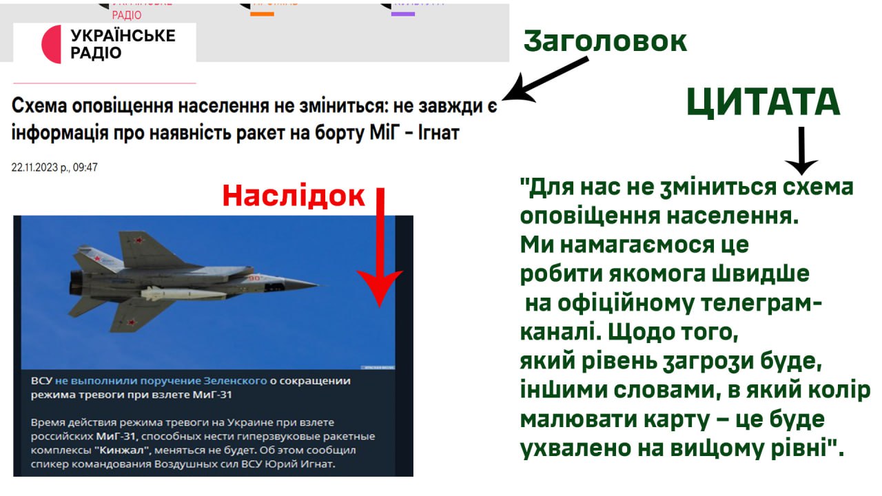 Таким чином, повідомлення про те, що схема оповіщення населення під час вильотів МіГ-31К не зміниться, яку поширили вчора ЗМІ, не відповідає дійсності.