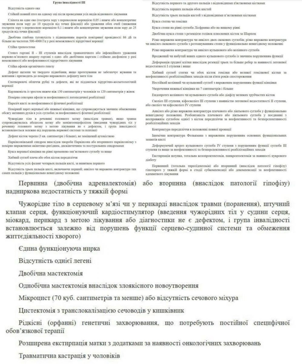 У цьому проекту закону в пункті про відстрочку прибрали 3-тю групу інвалідності. Тобто у разі його ухвалення таких людей в окремих випадках можуть мобілізовувати. У діючому законодавстві звільняються від мобілізації особи з інвалідністю без указування конкретної групи. Про це йдеться у законопроекті № 10378, передають «Українські Новини».