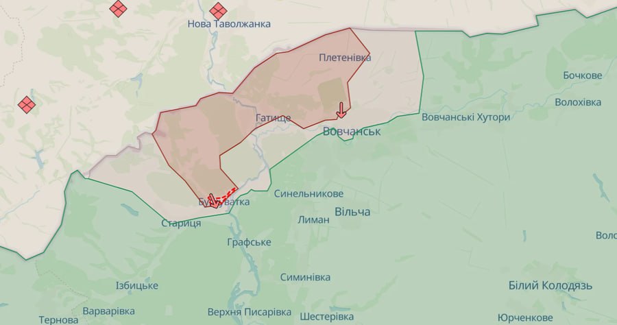 Українські бійці в окремих районах ведуть штурмові дії з метою покращення тактичного положення, а також проводять заходи з прочісування місцевості. В районі міста Вовчанськ українські підрозділи посилюють оборону з метою покращення тактичного положення. Сили оборони забезпечуються відповідними силами та засобами, підсилюються резервами з метою перехоплення ініціативи на полі бою, — казали у Генштабі.