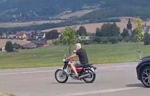 Глава Чехії відомий тим, що захоплюється мотоспортом. Як пишуть чеські видання, часто їздить без шолома (як на фото).