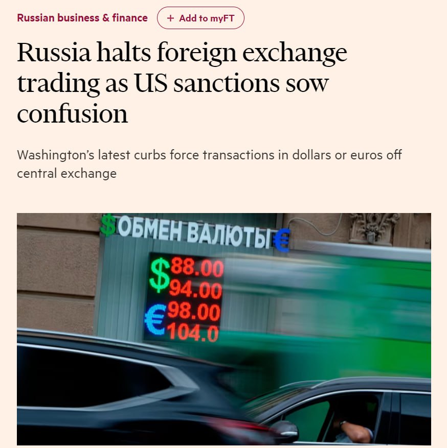 https://racurs.ua/n196317-haos-i-putanica-posle-sankciy-zapada-v-rossii-kajdyy-bank-mojet-stavit-sobstvennyy-kurs.htmlРакурсросія призупиняє валютні торги, оскільки останні санкції США створюють хаос та плутанину.