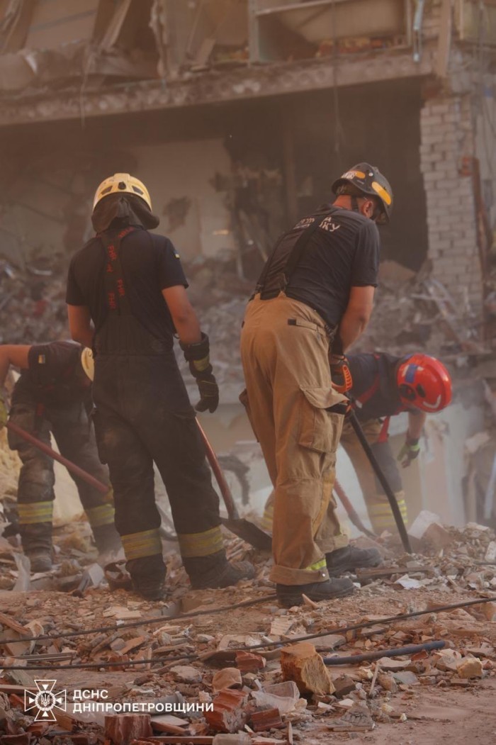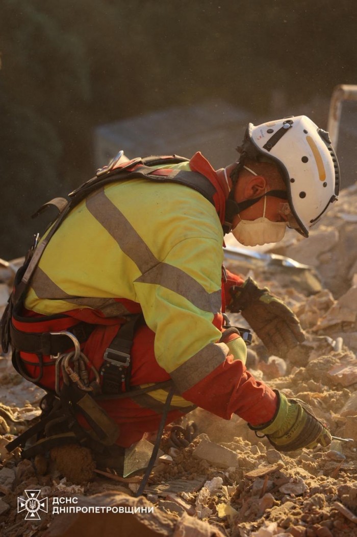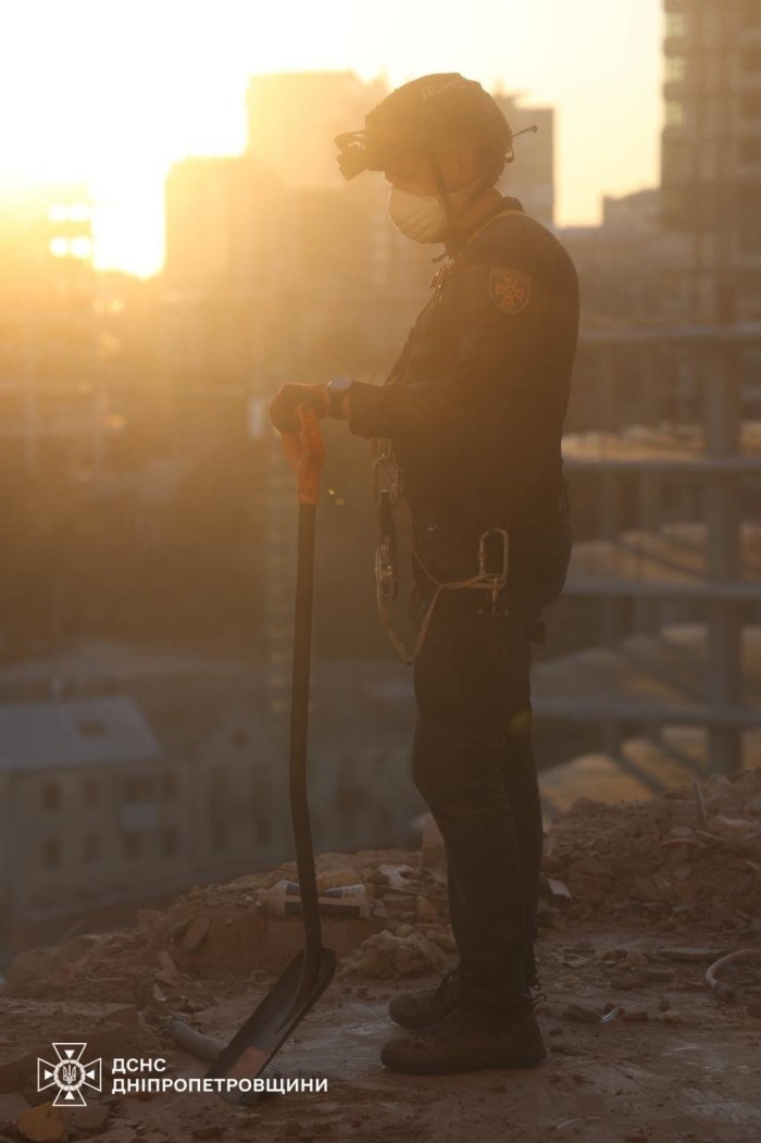 В Днепре продолжается ликвидация последствий ракетного удара по многоэтажке (ФОТО)