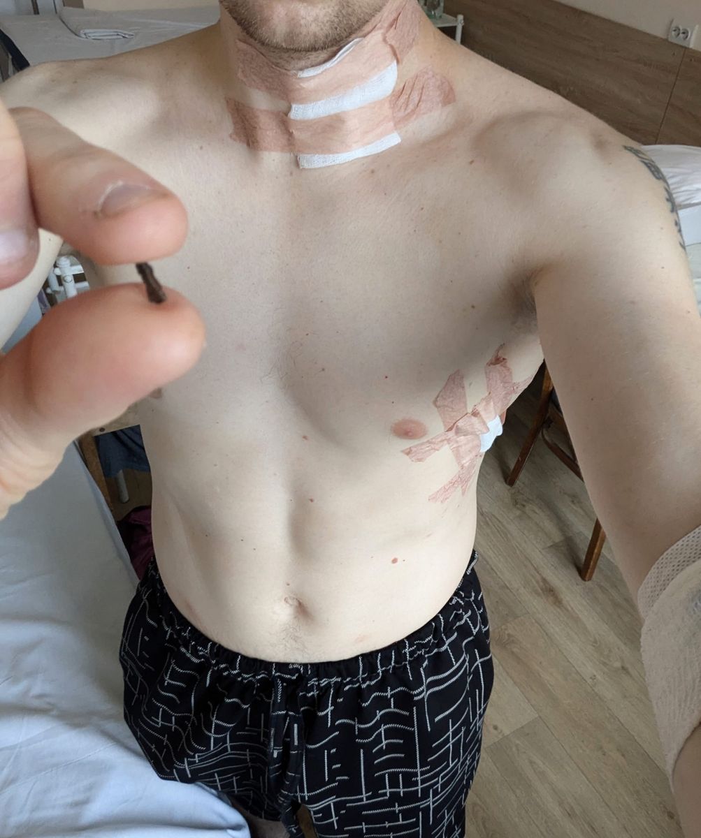 Зі мною знову сталося диво. Цей уламок увійшов мені в шию, проминув артерію і застряг у м’яких тканинах. А уламок, який влучив у груди, не пробив легені. Ще один витягли з вуха. Тож зі мною все гаразд, — написав Асєєв.