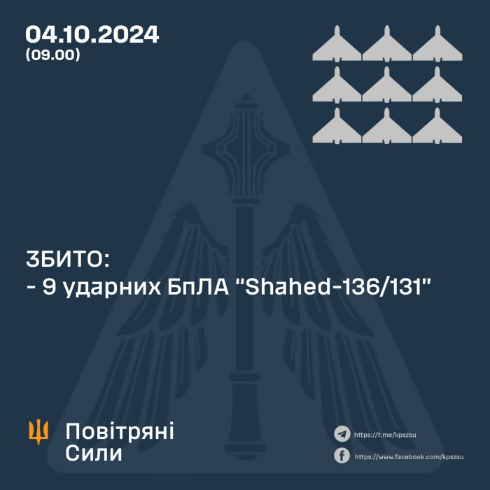 Девять «шахедов» сбили в ночь на 4 октября — Воздушные силы (ИНФОГРАФИКА)